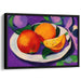 Introducing "Vivid Citrus Glow," a captivating still life canvas art that bursts with the lively energy of fresh oranges set against a vibrant backdrop, creating a feast for the eyes. This enchanting artwork features a skillfully arranged display of oranges on a pristine white plate, set against a lush purple and blue background that exudes a sense of dynamic contrast.