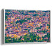 Introducing "Vivid Panorama," a mesmerizing European cityscape canvas art print that transports viewers to the heart of a bustling and colorful urban landscape. This vibrant piece offers an aerial view, showcasing the city's dense architecture in all its detailed glory.