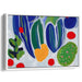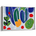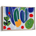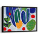 Introducing 'Vivid Velocity,' a mesmerizing canvas art print that bursts with a symphony of bold colors and dynamic forms, captivating viewers with its lively composition and vivid hues. This contemporary artwork is a visual feast dominated by deep blues and vibrant greens, showcasing abstract shapes reminiscent of leaves or petals, punctuated by striking red and orange accents. Against a soft, ethereal white background, the colors pop vibrantly, creating a striking contrast that commands attention.