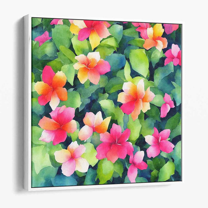 Decorate your walls with this high quality Tropical Flowers art print on canvas. Whether you hang it in your living room, bedroom or office, this artwork is sure to add a touch of beauty and color to your room.