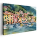 Decorate your walls with this high quality geometric Watercolor Portofino art print on canvas. Whether you hang it in your living room, bedroom or office, this artwork is sure to add a touch of beauty and color to your room.