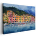Decorate your walls with this high quality geometric Watercolor Portofino art print on canvas. Whether you hang it in your living room, bedroom or office, this artwork is sure to add a touch of beauty and color to your room.
