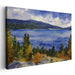 Introducing 'Watercolor Vista Canvas Art Print: Watercolor Vista,' a mesmerizing canvas art print that encapsulates the serene beauty of a lakeside landscape, inviting you to immerse yourself in its tranquil essence. This artwork skillfully portrays a vast lake mirroring the expansive sky above, bordered by dense, lush forests and distant rolling hills.