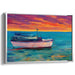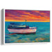 Introducing 'Water's Brushstroke Dance,' a mesmerizing canvas art print that transports you to a serene moment where a solitary boat gracefully drifts on calm waters under a captivating sunset sky. This artwork captures the essence of tranquility and beauty, inviting you to immerse yourself in the peaceful scene.
