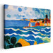 Whimsical Coastal Hamlet Reverie: Vibrant Seascape and Village Canvas Art