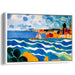 Introducing 'Whimsical Coastal Hamlet Reverie: Vibrant Seascape and Village,' a mesmerizing canvas art print that transports viewers to a charming coastal setting filled with vibrant colors and serene beauty. This captivating artwork showcases a picturesque seaside village against a backdrop of rolling waves and colorful buildings, creating a scene brimming with life and energy.