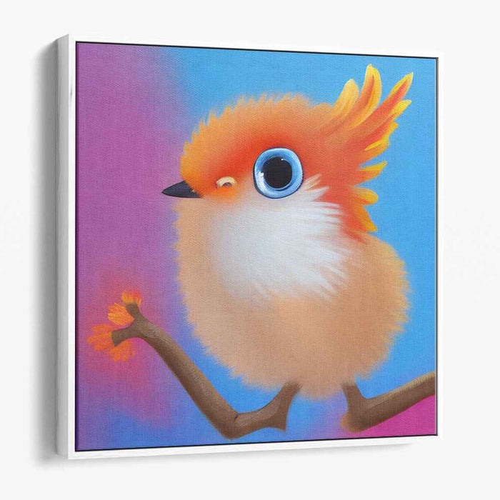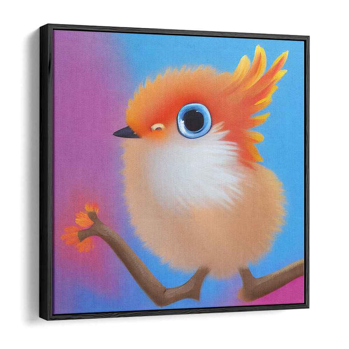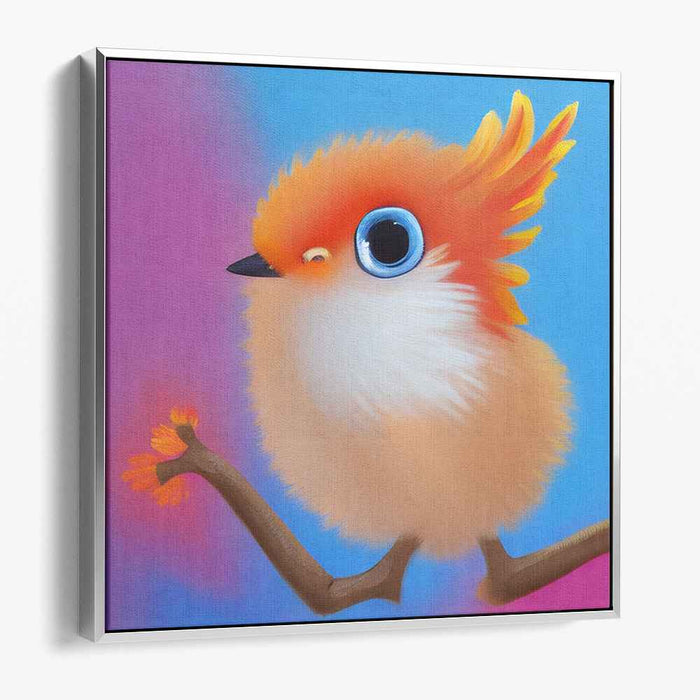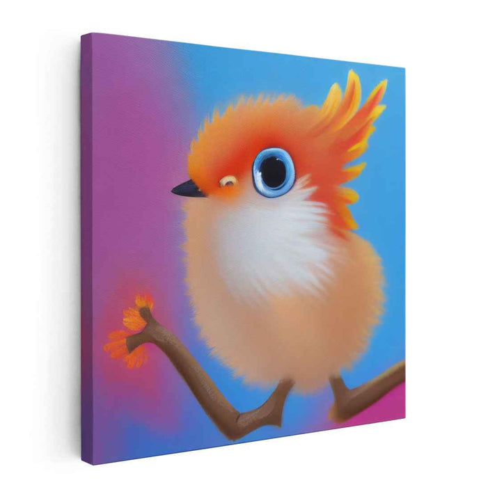 Introducing 'Whimsical Delight: Fluffy Orange Bird on a Branch,' a captivating canvas art print that brings to life the enchanting charm of a vibrant bird perched delicately on a slender branch. This whimsical artwork captures a moment of joy and wonder, perfect for spaces in need of a touch of color and fantasy.