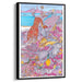 Introducing "Whimsical Wonders: Surreal Beach Fantasy," a mesmerizing canvas art print that transports viewers into a fantastical world of imagination and creativity. This intricate artwork unfolds on a beach setting against a backdrop of tranquil blue waters and distant mountains, enveloping the scene in a serene ambiance.