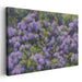 The primary color of deep, vibrant purple is complemented by fresh greens from the surrounding foliage, creating a harmonious interplay of colors that brings the artwork to life. The artist's use of short, textured brushstrokes, reminiscent of the Impressionist movement, captures the dance of light and shadow, infusing the piece with a dynamic and almost shimmering quality.