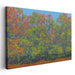 Immerse yourself in the enchanting world of 'Whispering Woodland Visions,' a captivating canvas art print that transports you to a lush forest on the brink of autumn's embrace. This serene forest landscape is a vibrant tapestry of colors, with majestic trees adorned in fiery reds, warm oranges, and cheerful yellows, harmoniously transitioning amidst the lingering greens of the foliage.