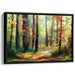 Introducing "Whispering Woods Melody," an enchanting canvas art print that immerses viewers in the heart of a serene forest painted in the gentle, autumnal hues of nature. This captivating artwork depicts a tranquil woodland path, embraced by majestic trees adorned in vibrant shades of red, orange, and yellow—a poetic ode to the changing seasons.