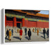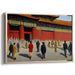 Introducing "Whispers Among Palace Walls: Daily Life at the Forbidden City," a mesmerizing canvas art print that transports viewers to the grandeur of an ancient Chinese palace, likely the iconic Forbidden City. This captivating artwork captures a bustling scene filled with figures in traditional attire, each frozen in dynamic poses that suggest a hive of daily activity.