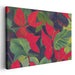 The artwork elegantly captures the essence of movement and life with its fluid portrayal of leaves that seem to dance across the canvas with ethereal grace. The prominent red leaves leap boldly into view, harmonizing with the deep greens and delicate yellows in the background to form a dynamic and visually engaging composition. The semi-abstract style of the piece simplifies leaf shapes while intensifying colors, adding a touch of drama and intrigue to the overall visual narrative.