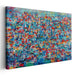 Introducing "Whispers Of Cerulean Echoes: Abstract Expressionist Blue and Multicolor Canvas Art Print," a vibrant and dynamic masterpiece that pulsates with a kaleidoscope of colors and abstract forms, exuding an aura of lively movement and intricate design. This captivating artwork is a symphony of vibrant hues and geometric shapes, intricately arranged in a mosaic of small squares and rectangles that dance energetically across the canvas.
