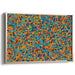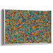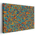 The deep, luscious blue serves as the calming foundation of this artwork, providing a serene backdrop against which bursts of bright orange burst forth with warmth and vitality. The interplay between these primary colors creates a dynamic contrast that not only captivates the eye but also stirs the soul. Complementing this bold duo are secondary shades of teal, amber, and hints of green, adding layers of depth and intricacy to the composition.