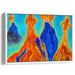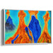 Introducing 'Whispers of Earthly Abstractions,' a mesmerizing canvas art print that delves into the vivid and abstract interpretations of natural forms, resembling fiery, fluid shapes that captivate the imagination. Dominated by a vibrant orange that seamlessly blends into deep blues, this artwork creates a visually stunning contrast that demands attention.
