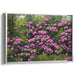 Introducing 'Whispers of Eden Bloom: Lush Garden Realism Canvas Art Print,' a captivating masterpiece that transports viewers into a vibrant rhododendron garden bursting with life and color. This exquisite artwork meticulously captures the lush beauty of a blooming rhododendron garden in full splendor, dominated by vibrant pink blossoms set against a backdrop of verdant greenery.
