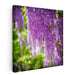 The canvas art showcases vibrant purple wisteria blooms as the central theme, set against a softly blurred backdrop that accentuates the flowers' vivid colors. The soft green tones peeking through the foliage in the background provide a delicate contrast, enhancing the overall visual impact of the piece. Flecks of light dancing amidst the petals add a touch of magic to the serene scene.