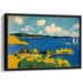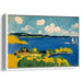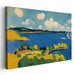 Introducing 'Whispers of Ocean Palette: Coastal Serenity in Bold Colors,' a mesmerizing canvas art print that encapsulates the essence of tranquility and vividness along a serene coastal landscape. This captivating artwork portrays a peaceful seascape with a striking expanse of deep blue waters, harmonized by a lush green coastline set against a sky adorned with fluffy white clouds. In the foreground, a vibrant yellow field bursts with warmth, beautifully contrasting the cool tones of the sea and sky.