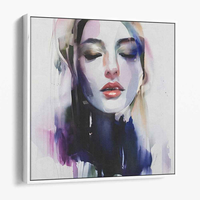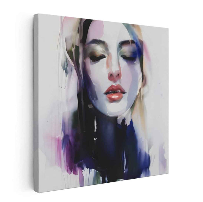 Introducing 'Whispers of Peaceful Serenity: Watercolor Portrait of Tranquility,' a mesmerizing canvas art that captures the essence of calm and introspection through a dreamlike portrayal of a woman's face. This artwork invites viewers into a world of tranquility and inner peace, depicted with fluidity and grace.