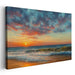 Introducing "Whispers Of Tide and Light," a mesmerizing canvas art print that encapsulates the serene and awe-inspiring beauty of a coastal sunset. This captivating artwork transports viewers to a vivid seascape where the setting sun gracefully meets the horizon, painting the sky and water with a warm, golden glow.