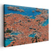 The canvas comes alive with densely packed terracotta-roofed buildings that stand out vividly against the deep blue waters, creating a striking contrast that elevates the scene's allure. The intricate cityscape reveals winding cobblestone streets, ancient fortifications, and lively marinas adorned with charming boats, each detail meticulously portrayed to immerse viewers in the city's rich history.