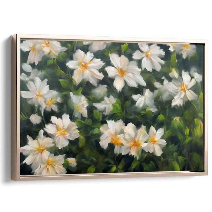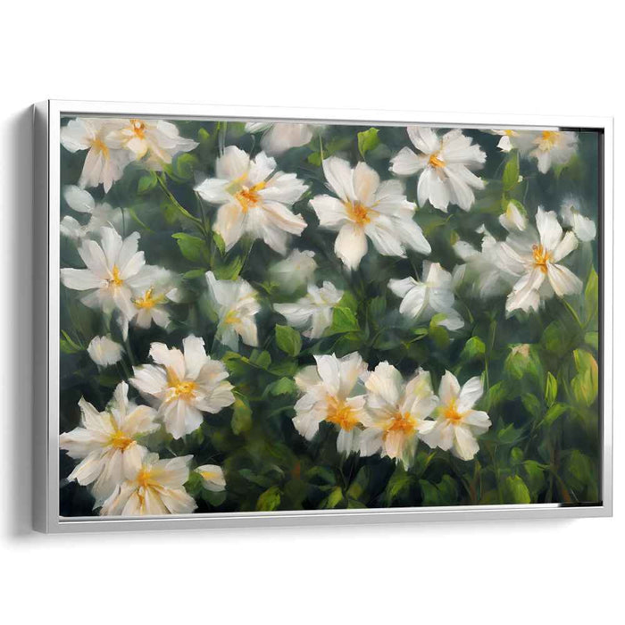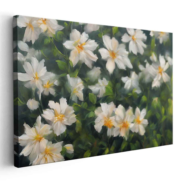 Whispers Of Winter Petals: Impressionist White Flower Canvas Art Print