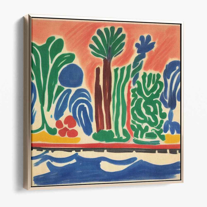 This piece is a perfect addition to a living room or study, where its vibrant colors and dynamic forms can energize and inspire. Belonging to the Fauvism and Abstract Expressionism movements, it channels the playful sophistication of a tropical landscape, reimagined through abstract interpretation.