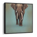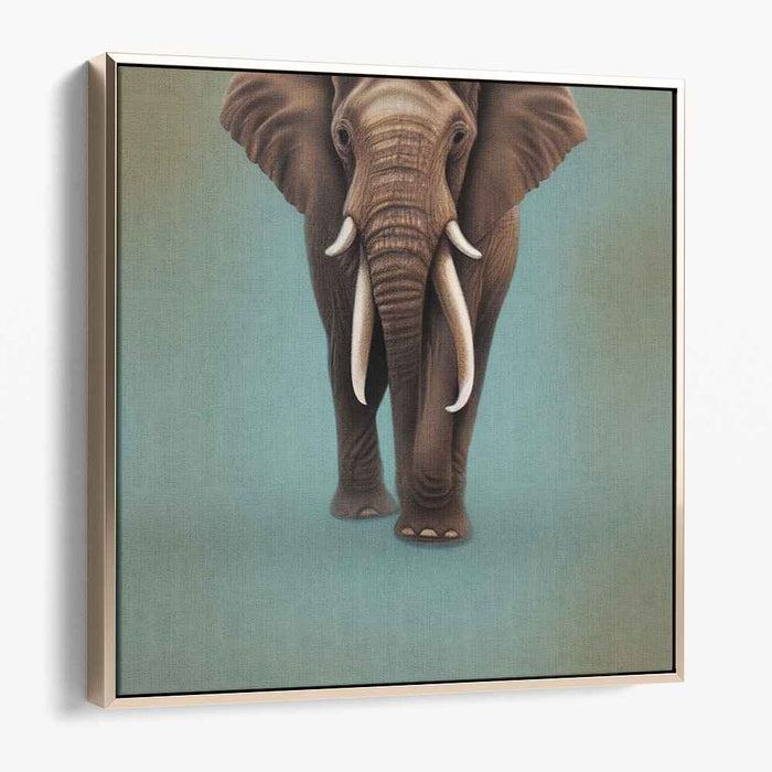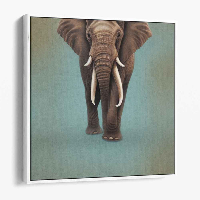 Introducing 'Wilderness Symphony,' a captivating portrait canvas art print that brings the awe-inspiring presence of a magnificent elephant to life with striking realism and intricate detail. This artwork showcases the elephant in all its glory, standing against a soft, gradient background that transitions from a soothing muted green to a gentle blue, enveloping the scene in a serene and calming atmosphere.