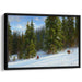Introducing 'Winter's Solitude: A Serene Snowscape with Elk,' a captivating canvas art print that transports viewers into a tranquil winter scene, capturing the essence of quiet isolation and peace amidst a snow-covered landscape. The artwork features a lone figure and an elk as central figures, set against a backdrop of dense evergreen trees, creating a harmonious and serene composition.