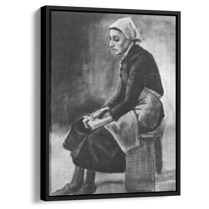 //kanvah.com/cdn/shop/files/woman-with-white-cloth-around-her-head-sitting-on-a-bench-1883_20___20Framed_vertical-angled_3-4_BLACK.jpg?v=1735984752 1.0