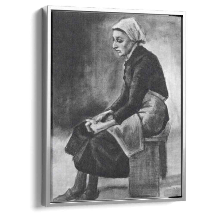 //kanvah.com/cdn/shop/files/woman-with-white-cloth-around-her-head-sitting-on-a-bench-1883_20___20Framed_vertical-angled_3-4_SILVER.jpg?v=1735984752 1.0