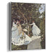 The garden in "Women in the Garden" is a sanctuary of peace and tranquility. Women in elegant dresses stroll amidst blooming flowers, their figures enveloped in a soft, hazy glow. The lush vegetation, rendered with exquisite detail, creates a sense of depth and immersion, drawing you into the idyllic setting.