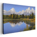 Introducing "Zen Peak Vista: Serene Mountain Landscape Canvas Art Print," a captivating artwork that transports viewers to a tranquil mountainous region, reminiscent of the majestic Tetons. This breathtaking landscape painting features a serene lake in the foreground, reflecting the grandeur of snow-capped peaks towering in the background.